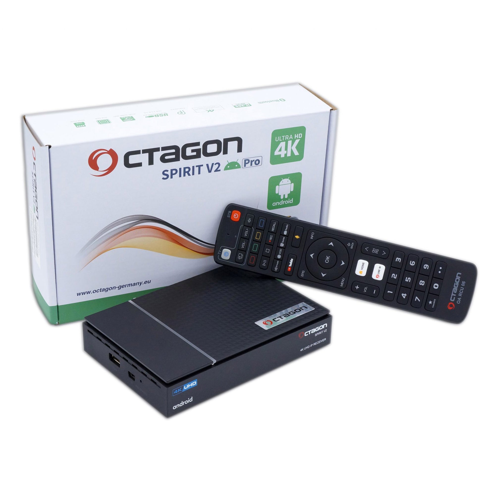"Octagon SPIRIT V2 PRO 4K UHD Android 11 IP-Receiver (HDR10+, Dual-WiFi, LAN, Bluetooth, HDMI)"